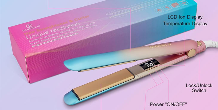 DORISILK’s 2-in-1 straightener heats up quickly to 500°F, leaving your hair smooth and frizz-free. Its ceramic tourmaline plates protect hair and enhance shine, effortlessly straightening or curling all hair types.